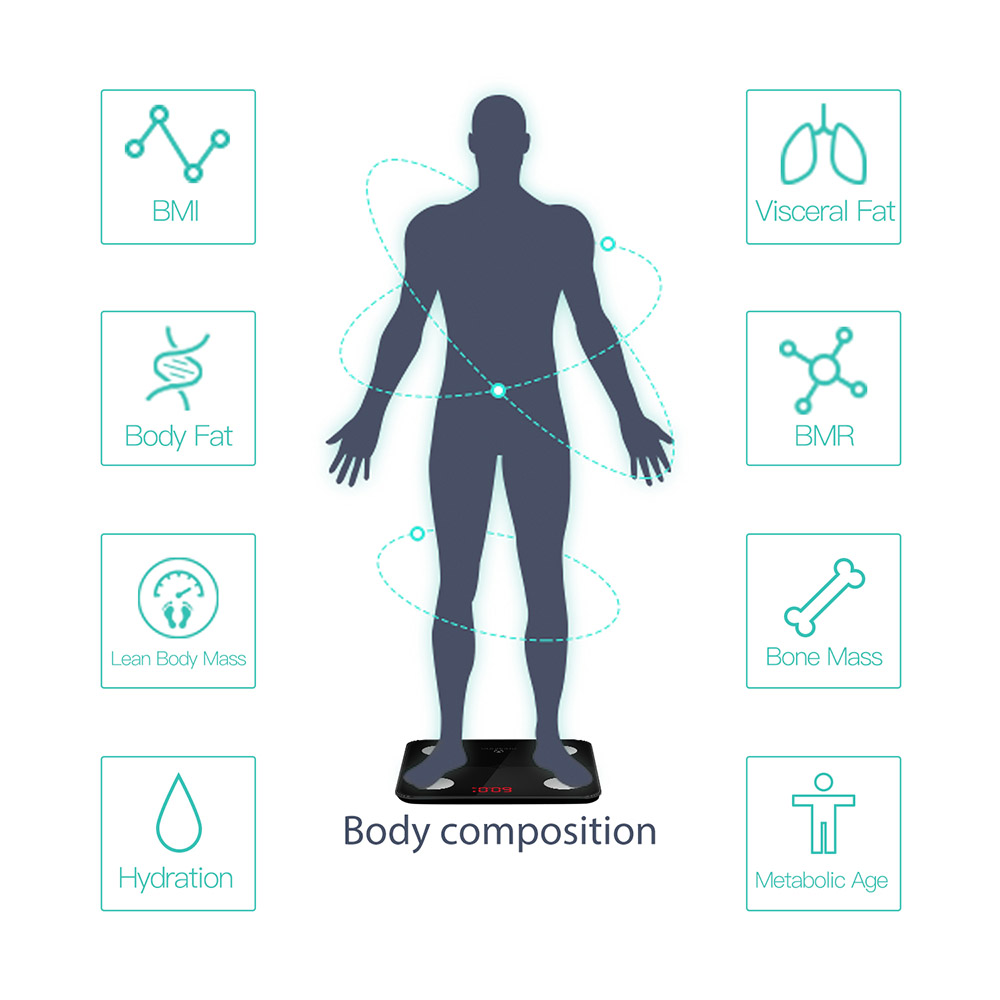 A mérleg a 4 precíziós érzékelőjén keresztül a legújabb bioelektromos impedancia analízis (BIA) technológia segítségével méri a biometrikus adatokat. Az adatokat Bluetooth-on keresztül automatikusan elküldi az alkalmazásának, mely ebből elemzést készít.