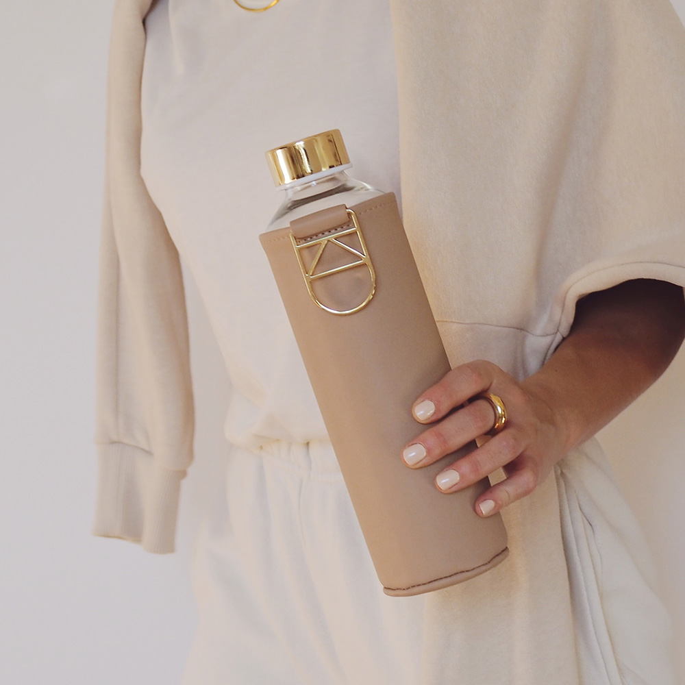 Egy igazán nőies, kifinomult üvegkulacsot keresel? Most megtaláltad! Az EQUA Mismatch Sienna üvegkulacsot a luxus, fény és csillogás ihlette. Ez a kulacs minden elegáns nő álma! Az arany színű kupak és fogantyú, illetve a kellemes, capuccino színű műbőr borítás teszi még exkluzívabbá ezt az EQUA üveg palackot. Vidd magaddal, hidratálj egész nap és csillogj!
